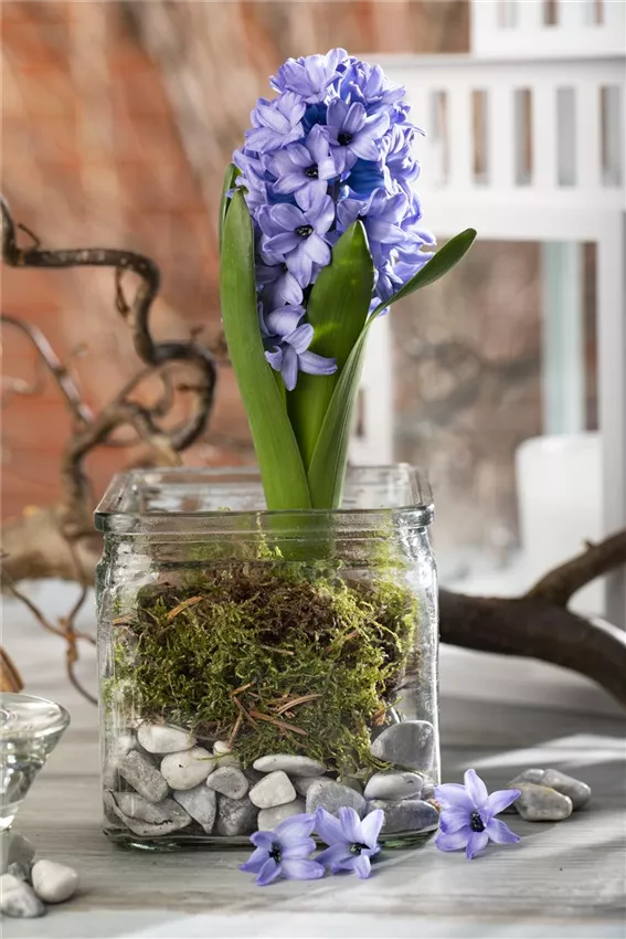 Schon im 19. Jahrhundert war das Treiben von Blumenzwiebeln im Glas beliebt unter Hobbygärtnern. Sehr bekannt ist das Hyazinthenglas: Ein bauchiges Glas, dessen oberer Teil die Blumenzwiebel aufnimmt, die knapp über dem Wasser aufliegt und nicht darin versinkt. Aber auch die Kultivierung in Einmachgläsern ist möglich. Ein elegantes Weihnachtsgeschenk, das in der dunklen Jahreszeit Vorfreude auf den Frühling bereitet!
