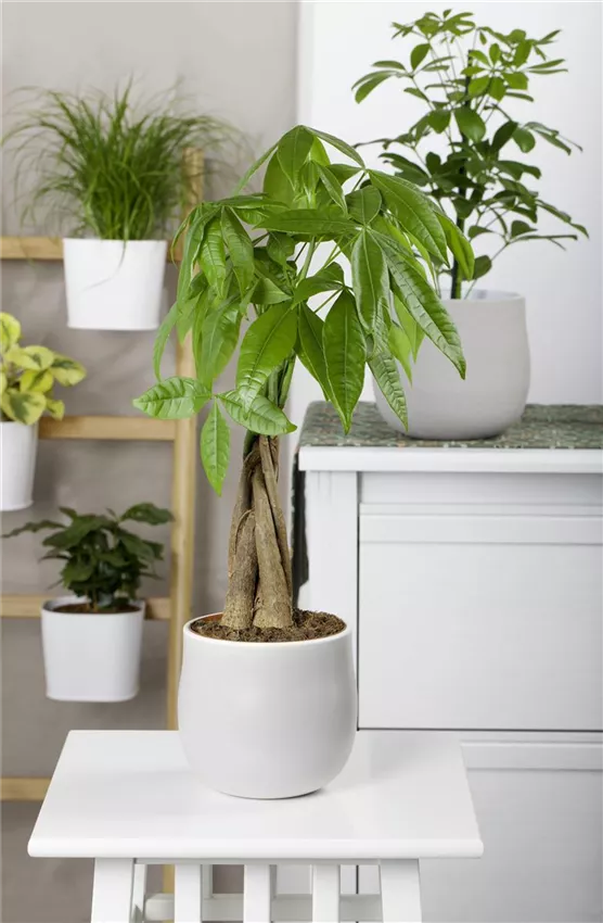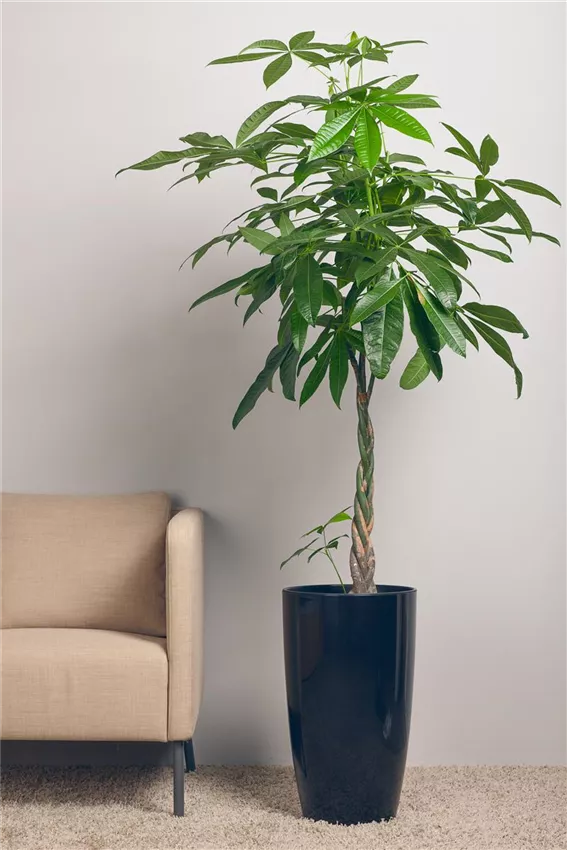 Dass die Glückskastanie zu den beliebtesten Zimmerpflanzen zählt ist kein Wunder. Die grossen, knallgrünen Blätter und der hübsch geflochtene Stamm machen in jedem Ambiente etwas her.