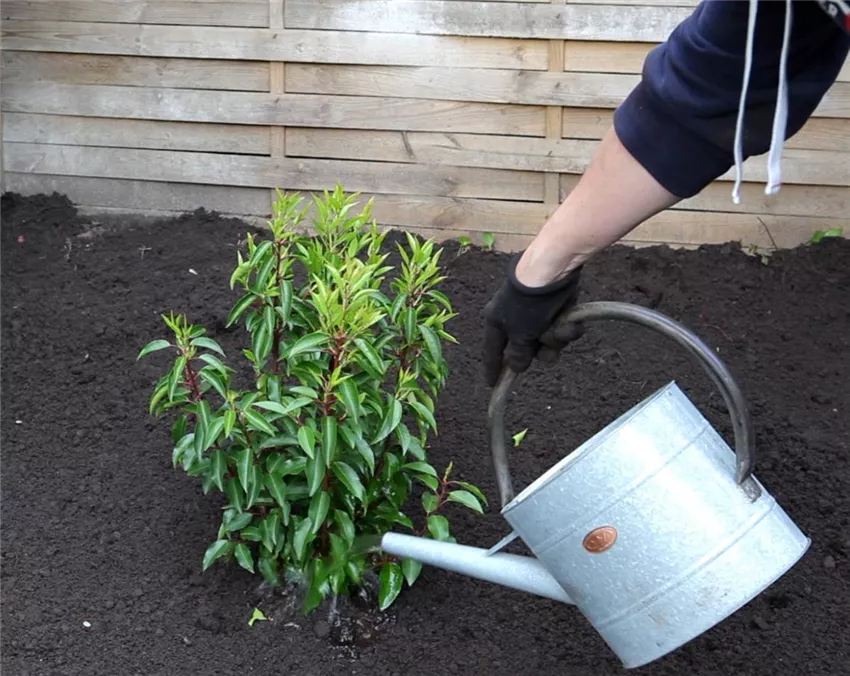 Je nach Wetter müssen Sie den Portugiesische Kirschlorbeer besonders in den ersten Wochen nach der Pflanzung sowie im Hochsommer nach Bedarf giessen. Auf anhaltende Trockenheit reagieren diese Pflanzen übrigens auch im Winter sehr empfindlich: Auch in der dunklen Jahreszeit sollte die Erde nicht über längere Zeit austrocknen!