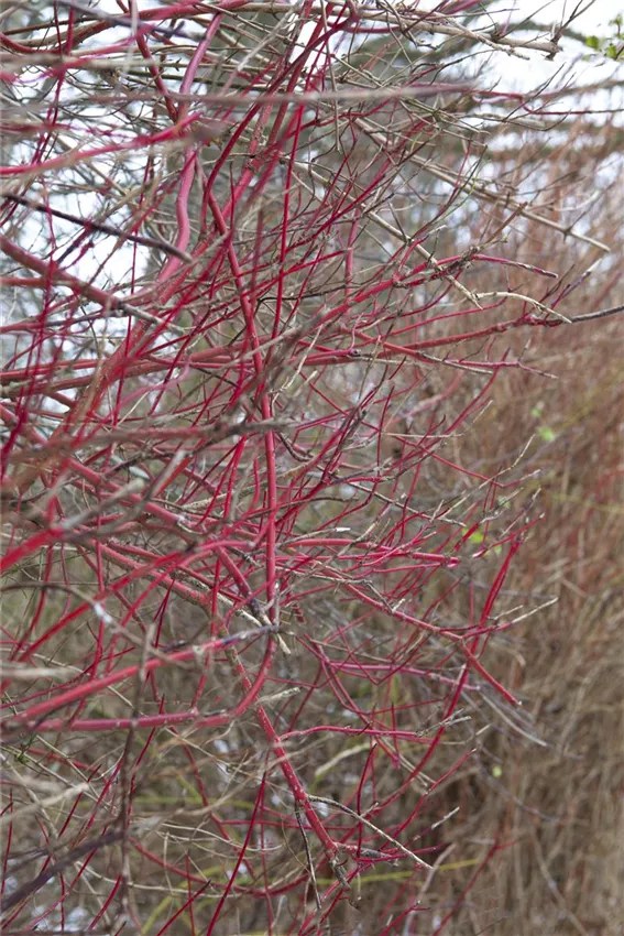 Viele herbstliche Pflanzen überzeugen mit bunten Ästen. Der Hartriegel ist besonders für seine roten Äste bekannt. Aber: nur die jungen Triebe sind tiefrot gefärbt. Ein regelmässiger Rückschnitt des Hartriegels sorgt für frische Triebe, die sich dann perfekt in das herbstliche Gesteck integrieren lassen.