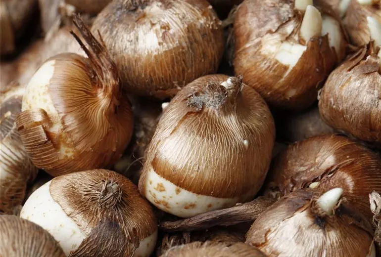 Es gibt etwa 80 Arten und zahlreiche Sorten. Auch wenn manche Sorten im Herbst blühen, ist Krokus vor allem als Frühlingsblume bekannt. Als solche wird er im Herbst in den Garten gesetzt. Der beste Pflanzzeitpunkt für die Blumenzwiebel ist zwischen September und Oktober. Dabei entstehen meist kleine oder grössere Gruppen. Besonders schön machen sich ganze Blütenteppiche in einer Farbe. Den Luxus einer Zwiebelsammlung in nur einem Farbton erhalten Sie im Fachhandel. Aber auch ein bunter Mix der verschiedenen Farben des Krokusses – von Weiss über Gelb bis Lila – ist ein Hingucker. Üblicherweise sind die Blumenzwiebeln noch nicht ausgetrieben, wenn man sie setzt. Eine erste Wurzelbildung ist aber kein Drama. Im Gegenteil: Man erkennt gut, wo bei der Zwiebel unten ist.